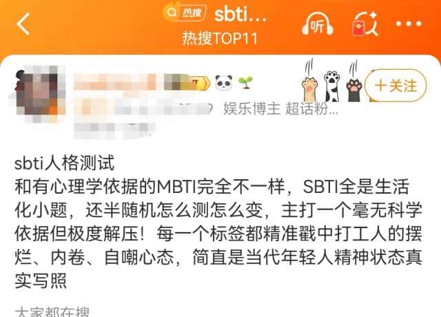 「SBTI得啖笑咋,唔好太認真,但笑完之後個心暖暖地。」