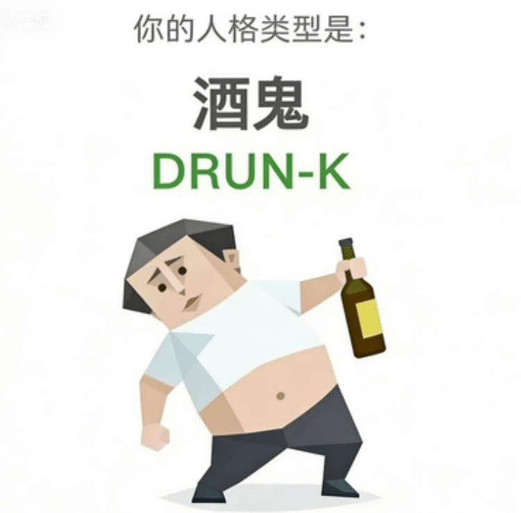 SBTI測試一推出,社交平台即刻被結果截圖洗版。有網民分享自己測出「DRUNK / 酒鬼」人格,搞笑留言:「我同作者個朋友一樣,係咪代表我都需要戒酒?」另一位網民話:「測出清醒腦,但明明尋晚先飲醉,個測驗係咪壞咗?」