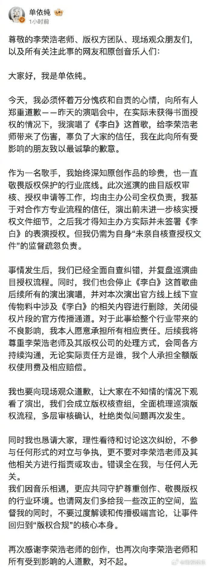 Home » 單依純李榮浩版權戰未打先和?網民兩派大戰:有人撐原創有人話得饒人處且饒人