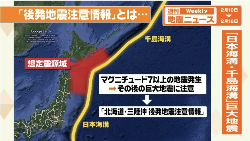 氣象廳依照二〇二二年制定的預警機制,確認此次七點五級地震震源位置位於日本海溝及千島海溝的預計震源帶範圍內,符合海槽型地震的定義,因此作出預警發布。該機制旨在於地震後短時間內提醒沿岸地區預防更大震動。